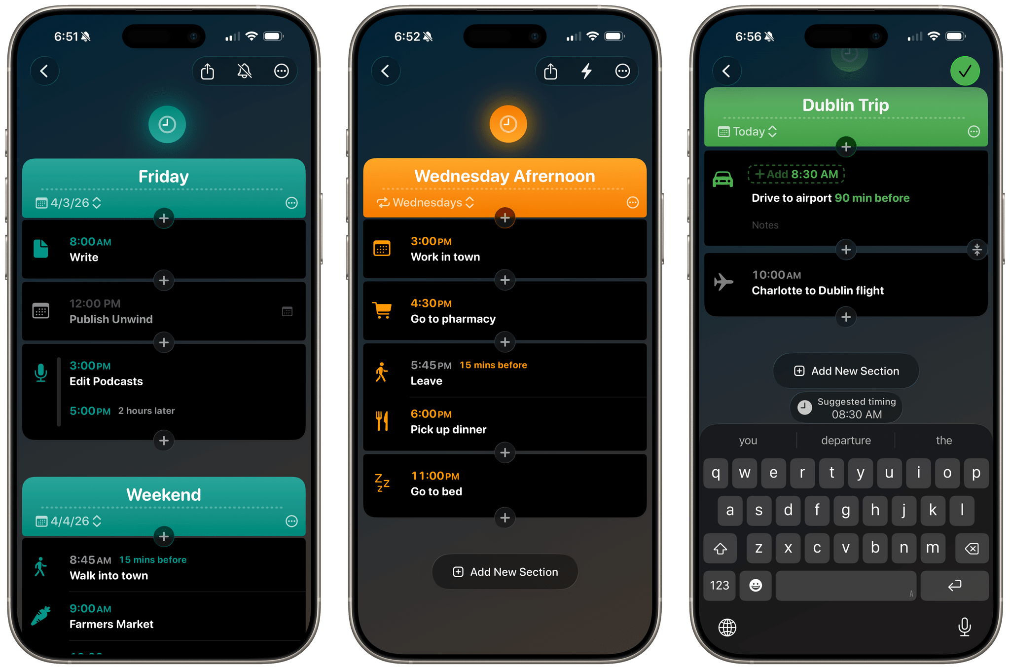 Hour by Hour solves this sort of scheduling, but for every type of event, by using the same kind of reverse planning. At the same time, it’s not really a calendar app so much as a scheduling companion for your calendar. You can pull your calendar events into Hour by Hour, but you don’t have to, and if you dive into the app expecting to use it the same way you use a traditional calendar, the assumptions you bring with you will probably trip you up.