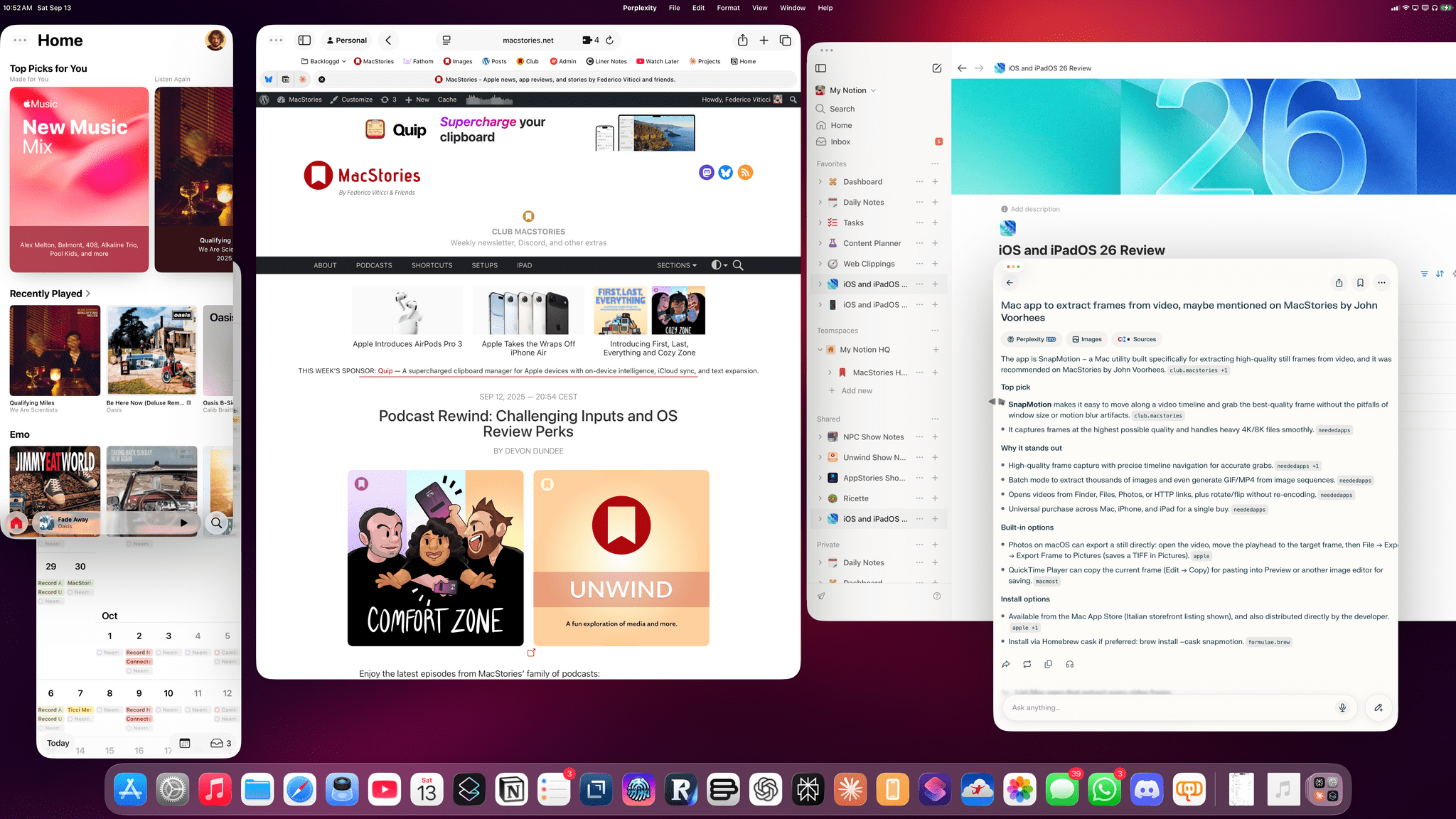 When I say that iPadOS 26 is a monumental release for the iPad, this is what I mean: there are so many more options now, and all of them are accessible via multiple input methods, on a variety of iPad models, with support for external monitors, and with support for different window layouts in different iPad orientations. The breadth of available configurations and interactions is, frankly, astounding…and overwhelming at first.