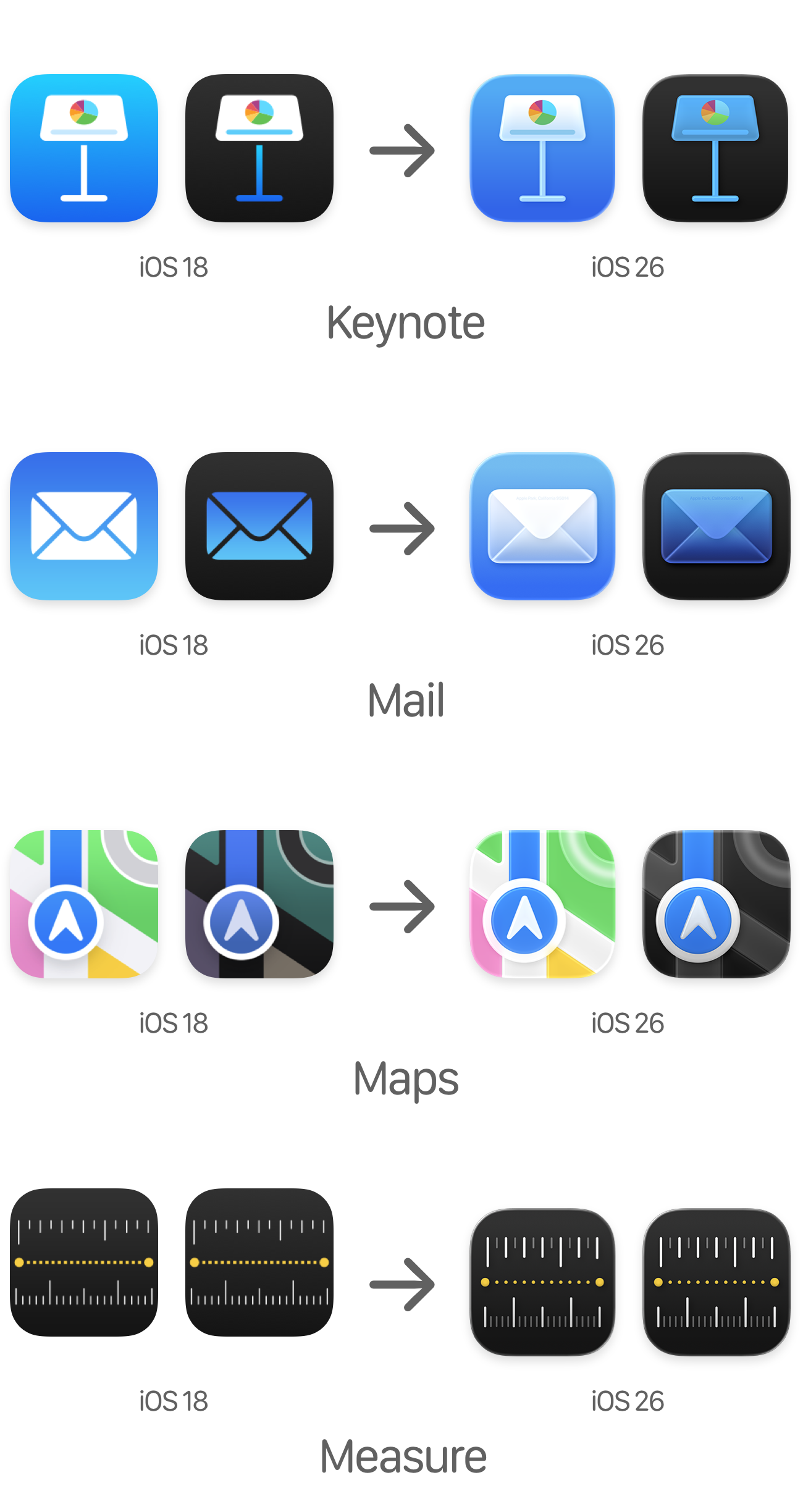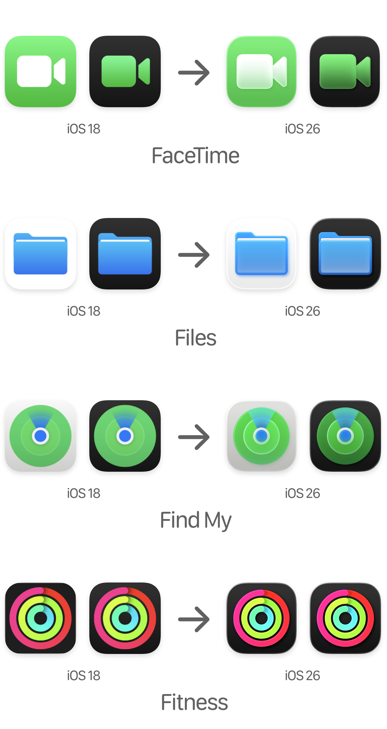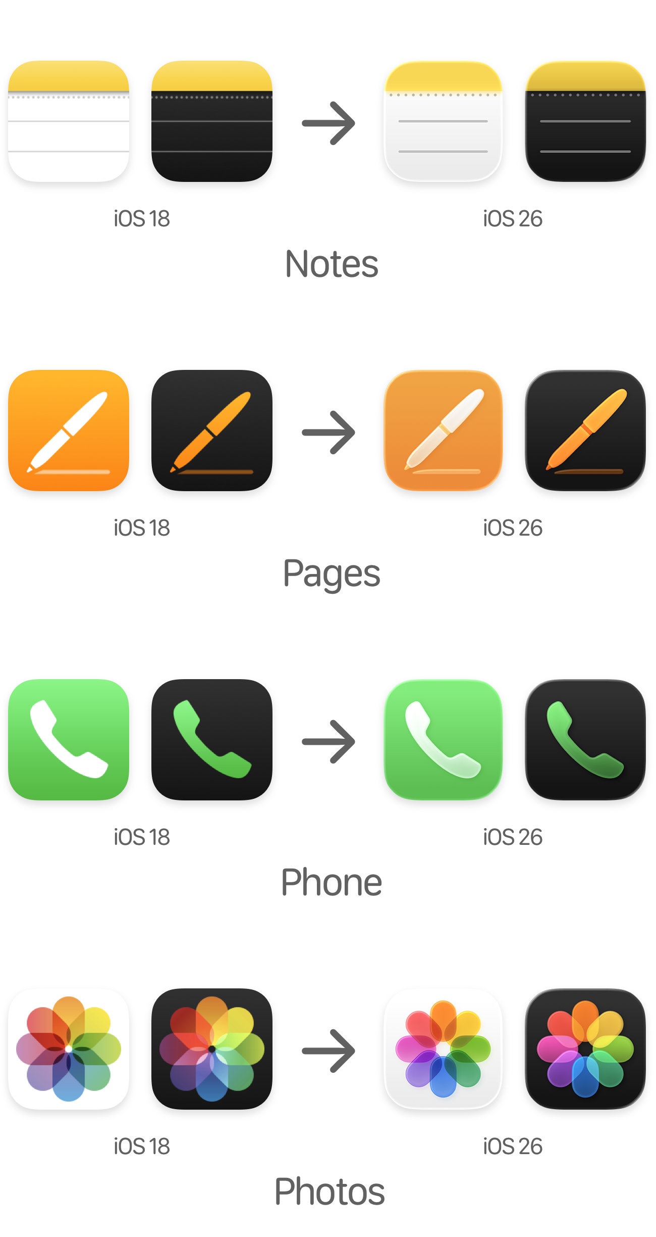 As a bonus for this review, I teamed up with Basic Apple Guy to offer a comprehensive look at all the Apple icon changes from iOS 18 to iOS 26. You can find the full-resolution images below, and you can click the button underneath each image to open it in a new tab if you want to inspect the details more closely.