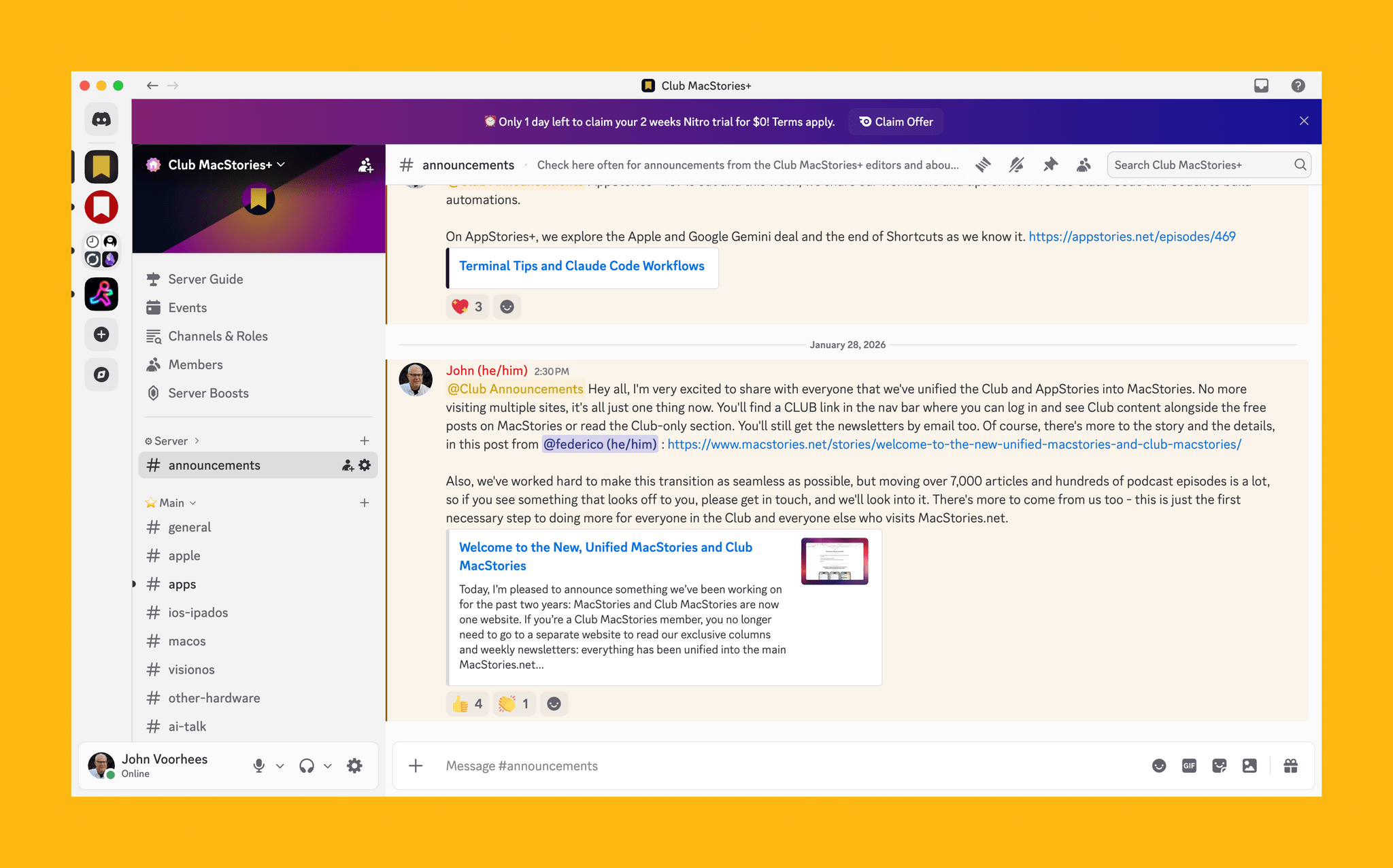 If you’re a Club MacStories+ or Premier member who joined before today’s transition, your Discord access remains intact. There’s nothing you need to do.
