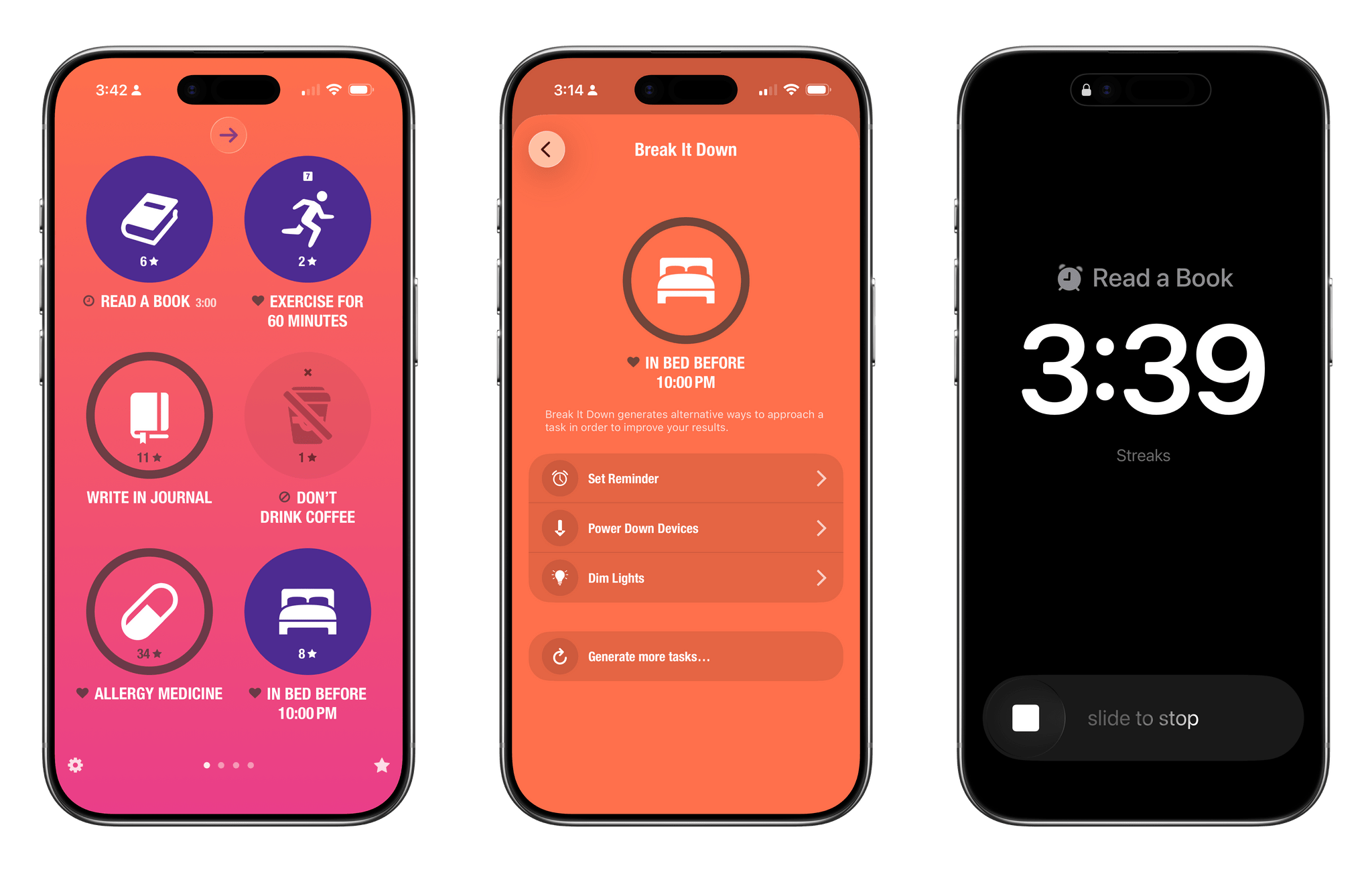 Streaks incorporates Apple Intelligence’s on-device Foundation model with a clever new feature called Break It Down that’s available in each task’s settings. If you’re struggling with a particular task or considering how you could adjust it to better meet your goals, Break It Down can offer alternative and supplemental tasks that might help.