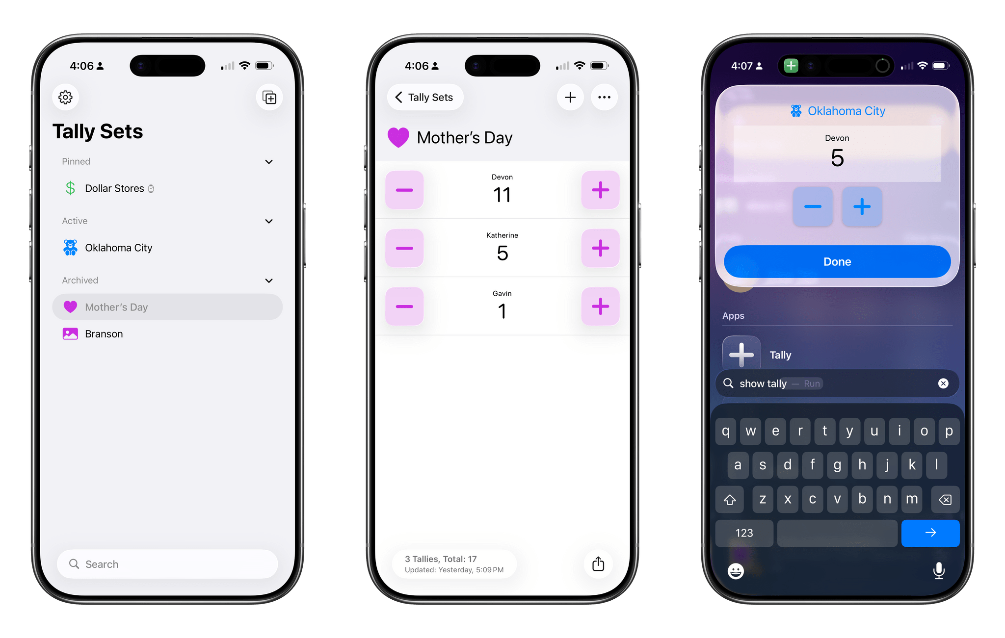 I’m really happy to see Tally integrate a fascinating new feature in iOS 26 that has mostly gone under the radar: interactive snippets. Using the power of app intents, the app can display a miniature UI overlay that allows you to freely update a tally at any time. This functionality is available via the new ‘Show Tally’ Shortcuts action, and it’s a great example of what these snippets can do. I’d love to see more of these from Tally, as well as the ability to invoke them as controls in Control Center, on the Lock Screen, and with the Action button.